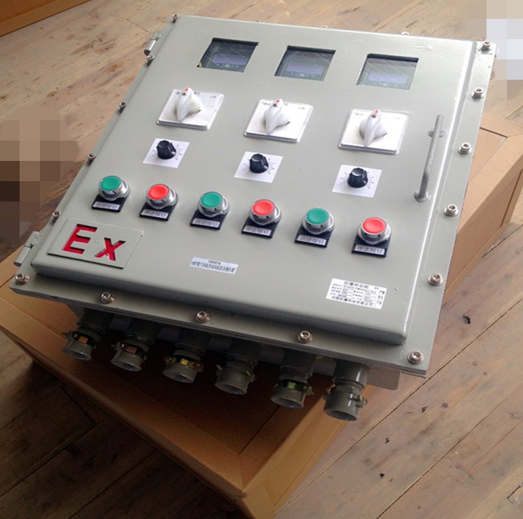 防爆控制箱一般有復(fù)合型和隔爆型兩種結(jié)構(gòu)。復(fù)合型外殼采用增安型結(jié)構(gòu),內(nèi)裝元件采用隔爆型元件或增安型的元件;外殼采用ZL102鋁合金壓鑄成型,表面高壓靜電噴塑,內(nèi)裝的元件有按鈕,控制開關(guān),儀表等均為防爆元件。